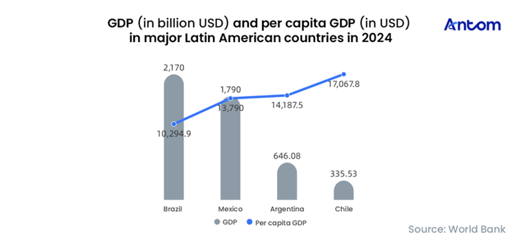 From a macroeconomic standpoint, Brazil recorded a GDP of $2.17 trillion in 2024, the largest in the region. Although Argentina and Chile have smaller economies overall, their per capita GDP is higher. According to Credit Suisse’s 2019 Global Wealth Report, Chile is the wealthiest country in Latin America, with per capita wealth more than five times that of Argentina and more than double that of Brazil.