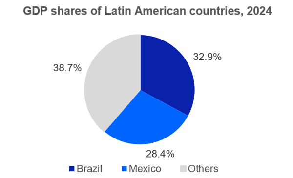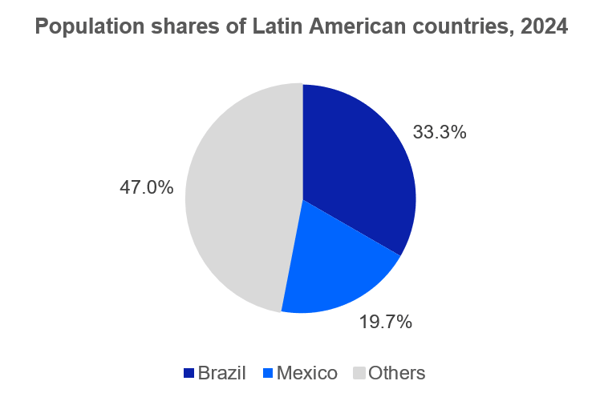 Brazil and Mexico are the largest and second-largest economies in Latin America respectively. According to Statista, in 2024 Brazil’s GDP reached USD 2,331.4 billion and Mexico’s GDP stood at $2,017 billion, with the two countries together accounting for around 61.3% of the region’s total GDP. From a demographic perspective, Brazil is the most populous country in Latin America with over 200 million people, followed by Mexico with about 130 million. Together, they represent roughly 52% of the region’s total population. Their strong economic performance and large population base provide a solid foundation for the development of consumer-related industries.