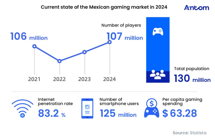 Mexico’s robust digital infrastructure further fuels this growth. With 83.2% internet penetration and 125 million smartphone users – covering nearly the entire population – the country provides a solid foundation for online and mobile gaming. High connectivity not only lowers barriers to game access and distribution but also supports the rapid adoption of new content and services.