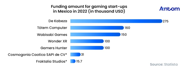 Data from the report indicates that, from 2022 to 2023, 67 Mexico-based gametech start-ups secured venture capital funding – a clear signal of investor confidence and growing market appeal. Notably, De Kabeza and Wasabi Videojuegos raised USD 275,000 and USD 160,000 respectively in 2022, further validating the feasibility and growth potential of local gaming ventures.