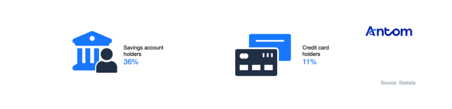 Financial service penetration in Mexico is also inadequate, with only 49% of those aged 15 and above having bank accounts. Most bank branches are in the capital, leaving remote areas underserved. High interest rates and strict credit checks hinder credit card issuance. In 2024, debit card usage was 36% and credit card usage just 11%, far behind other major Latin American economies.