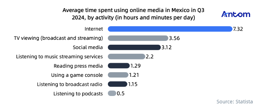 In Q3 2024, Mexican internet users spent about 7 hours and 32 minutes online per day, and also spent longer periods of time watching television and using social media.