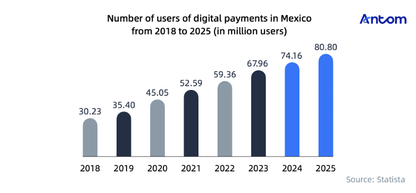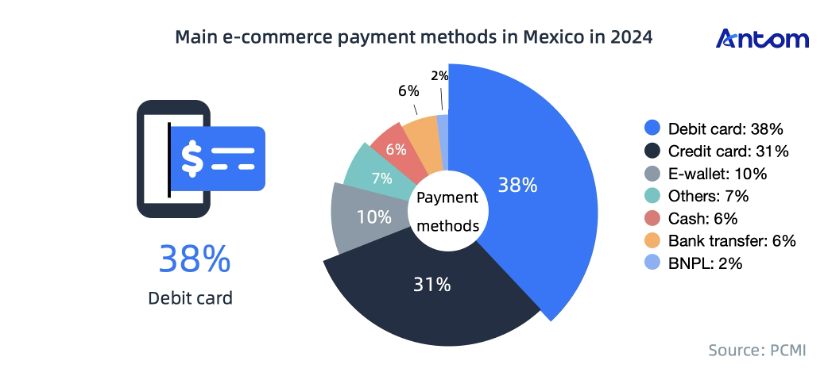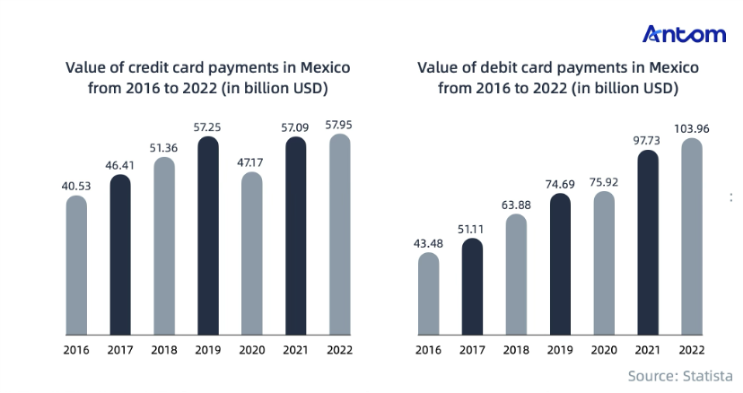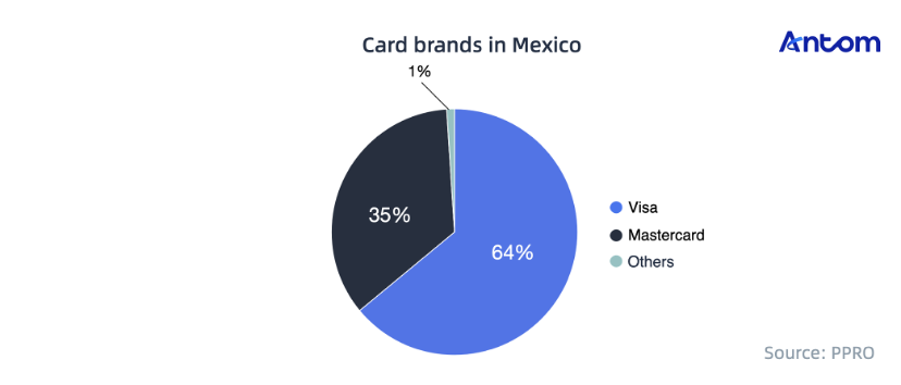 The main card brand in Mexico is Visa, followed by Mastercard, which together account for 99% of the market share. Antom supports both brands.