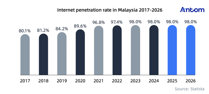 According to Statista, Malaysia had 34 million internet users in 2024, achieving a 98% penetration rate.