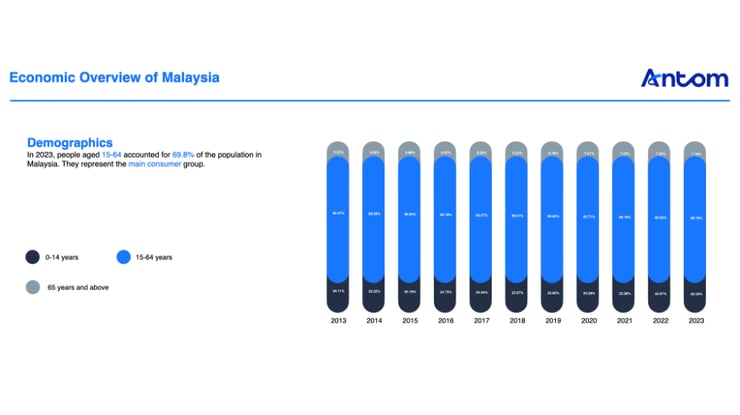 About 69.8% of the Malaysian population is 15 to 64 years old – the working age, driving the economy. In 2023, nearly 70% of this demographic constituted the nation’s core consumer base.