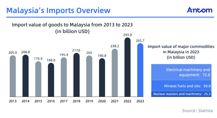 Additionally, Malaysia is a major importer, with the import value of goods reaching $265.8 billion in 2023. The primary import category is electrical and electronic equipment. For 13 years, China has been Malaysia’s largest trading partner and primary source of imports. The government’s push for digitalisation may give rise to an opportunity for more cross-border business and e-commerce with other countries.