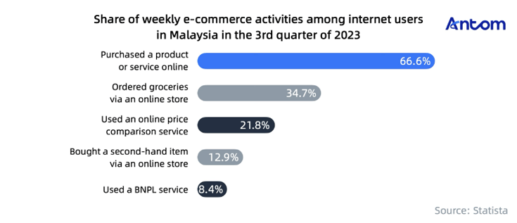 Statista found that about 66.6% of Malaysians’ online activities were for purchasing products or services in the third quarter of 2023. The most frequently purchased items online are clothing, cosmetics, body care products, and shoes.