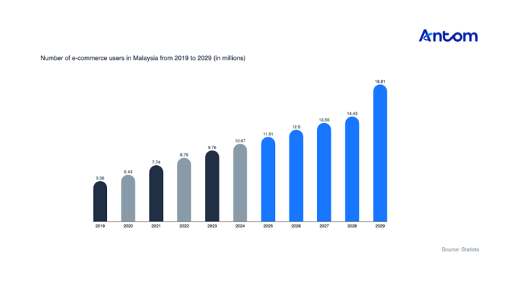 In 2023, Malaysia had 9.76 million online shoppers – this figure is expected to double by 2029, reaching 18.81 million e-commerce users.