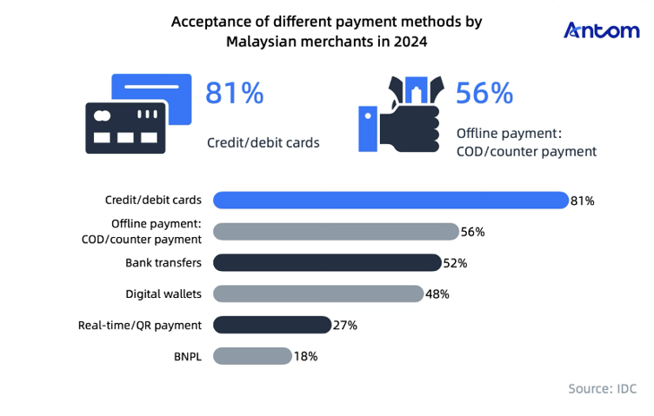 IDC's survey shows that 81% of merchants accept card payments, with cash on delivery, bank transfers, and digital wallets also commonly used. As digital payment adoption grows, merchants can enhance profitability by supporting digital wallets.