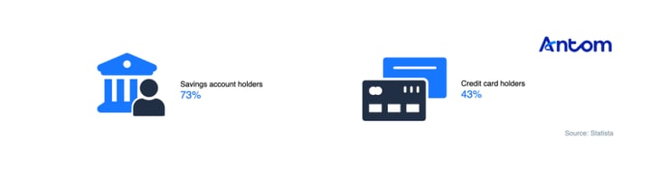 Cards remain the most preferred cashless payment method. The usage/ownership rate of bank accounts in Malaysia is 73%, and the rate of credit cards is 43%.