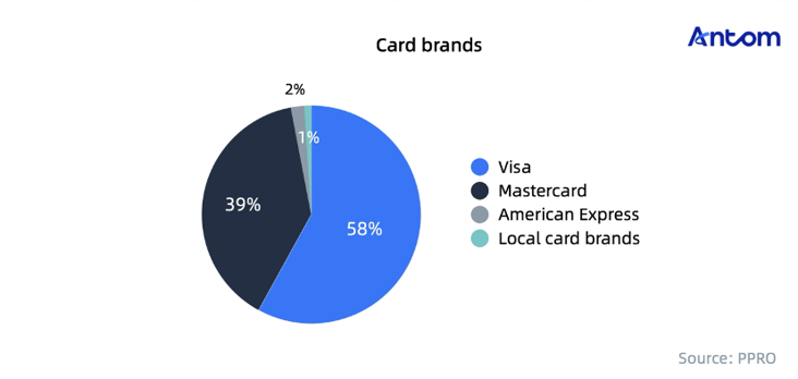 The leading card brands are Visa and Mastercard.