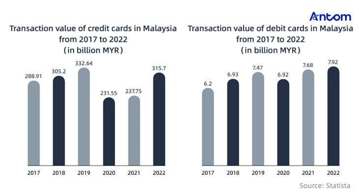 In 2022, the transaction value of credit card payments in Malaysia was approximately MYR 315.7 billion, while the value of debit card payments reached MYR 7.92 billion: