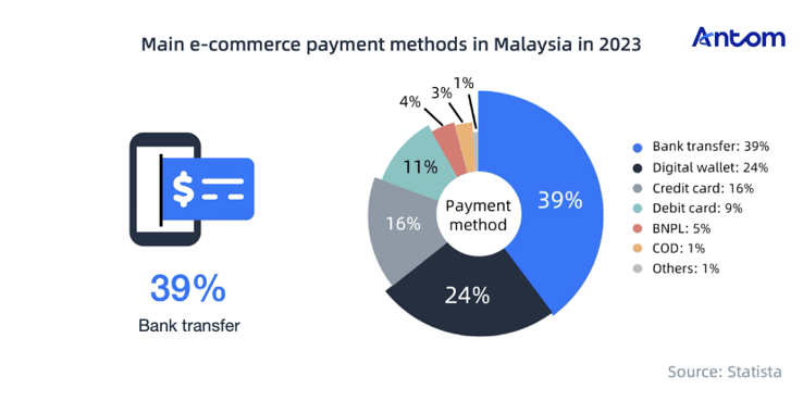 Bank transfers and card payments are Malaysia's most popular payment methods, but digital wallets are gaining popularity.