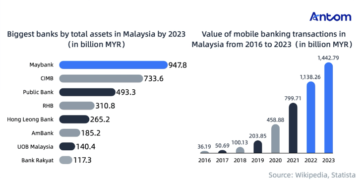 In 2023, Malaysia's mobile banking transactions reached MYR 1.4 trillion, a 26.7% increase from the previous year. The largest banks (by total assets) are Maybank, CIMB, and Public Bank.