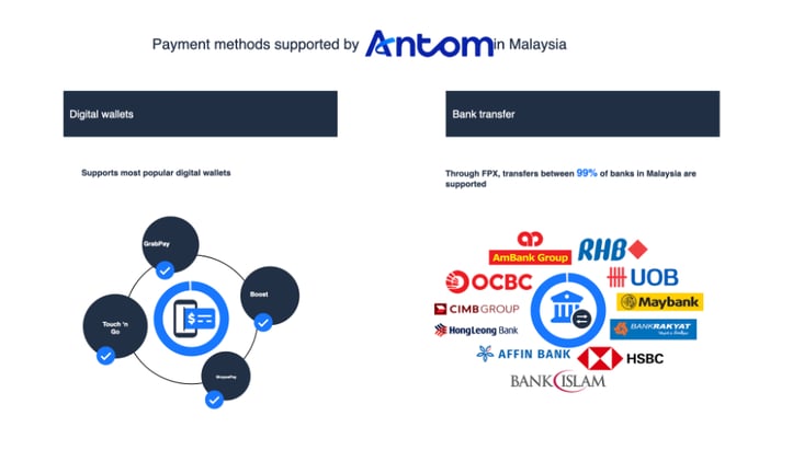 Payment methods supported by Antom in Malaysia