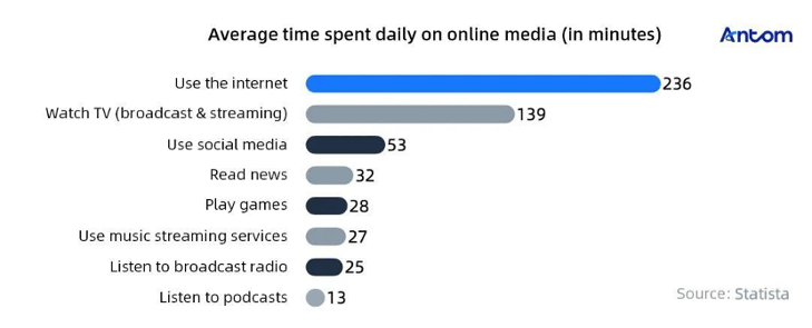 In the third quarter of 2023, Japanese internet users spent approximately 236 minutes online daily, with a significant portion spent watching TV (both broadcast and streaming).
