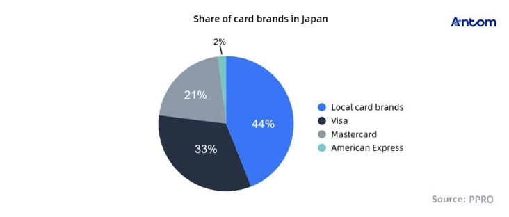 Cards from local issuer JCB dominate the market, followed by Visa and Mastercard.