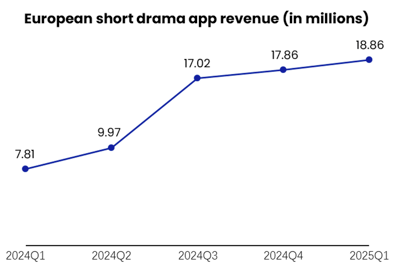 European short drama app revenue, Q1 2024–Q1 2025
