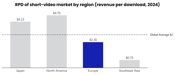 Furthermore, Europe’s RPD (Revenue per Download) exceeds the global average, showing that users demonstrate both strong payment capacity and a willingness to engage with premium content. This suggests that even with a relatively limited user base, platforms can still achieve revenue growth through refined operations.