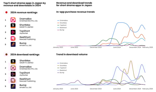 Top 5 short drama apps in Japan (2024) and revenue/downloads trends