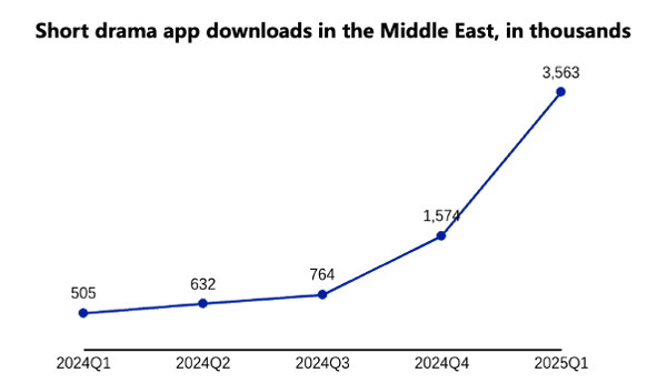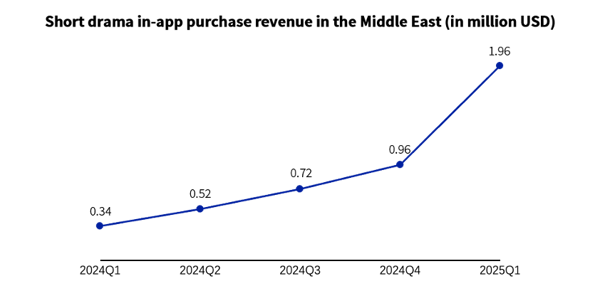Short drama in-app purchase revenue in the Middle East, Q1 2024 to Q1 2025