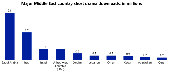 Short drama downloads in major Middle Eastern countries, 2025 year-to-date