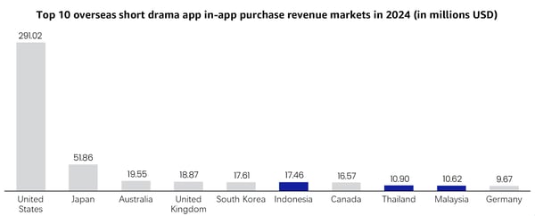 Top 10 overseas short drama app in-app purchase revenue markets, 2024