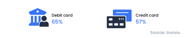 Debit card ownership stands at 65%, while the credit card penetration rate has reached 57%.