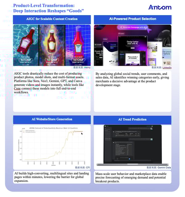 Tools like Sora, Veo 3, or Runway can generate on-demand videos; GPT, Canva, and similar platforms produce product images in seconds; workflow engines like Coze seamlessly chain these tools together into automated production lines.