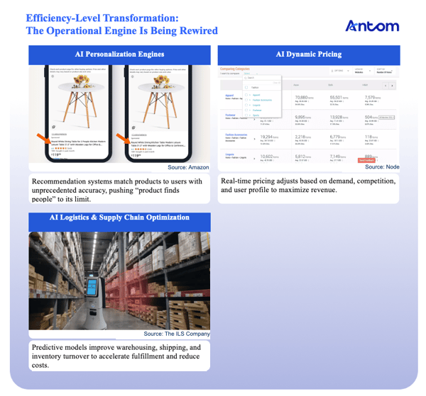 And across logistics and supply chains, AI systems optimize inventory movement, warehousing, and fulfilment.