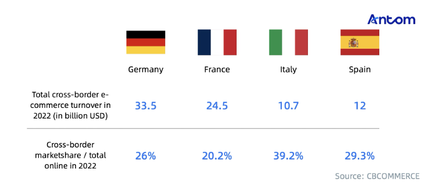 While Spain shows lower consumer spending, its growing market attracts brands targeting the mid-to-low-end segment, given its substantial low-to-middle-income population demanding affordable products. These four countries' e-commerce markets total US$258.7 billion.