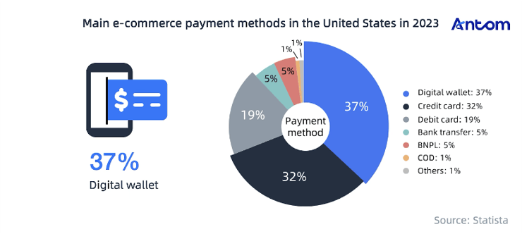 Digital wallets have overtaken credit cards as the most popular online payment method in the US in 2023. More than half of consumers use them more frequently than traditional payment methods, attracted by speed, ease, and mobile compatibility.